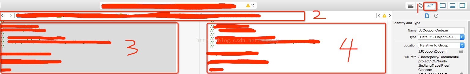 2.從另外一個分支的xcode窗口中選中同名的文件,然后使用“command+`”切換到當前的xcode窗口。