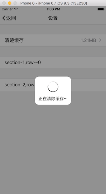 d. 當設置界面的cell比較多時,如果還在計算緩存大小時,清除緩存的cell從視圖中消失,那么加載視圖動畫就會被停止,當返回到清除緩存cell時,看不到加載動畫。解決方案兩種方法:一個是在cell創建的代理方法中重新開啟動畫;另一個是封裝到layoutSubviews方法中。