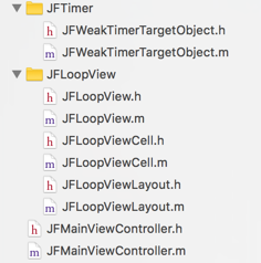 #import "JFLoopViewCell.h"@interface JFLoopViewCell ()@property (nonatomic, weak) UIImageView *iconView;@end@implementation JFLoopViewCell- (instancetype)initWithFrame:(CGRect)frame { if (self = [super initWithFrame:frame]) { UIImageView *iconView = [[UIImageView alloc] init]; [self addSubview:iconView]; self.iconView = iconView; } return self;}- (void)setImageName:(NSString *)imageName { _imageName = imageName; self.iconView.image = [UIImage imageNamed:imageName];}- (void)layoutSubviews { [super layoutSubviews]; self.iconView.frame = self.bounds;}@endJFLoopViewLayout.h文件