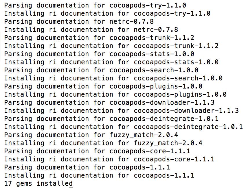終端輸入:$ sudo gem install -n /usr/local/bin cocoapods