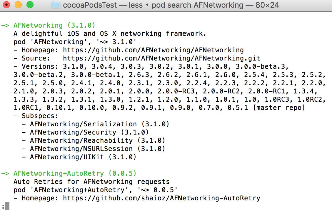 2、使用CocoaPods可以很方便地查找新的第三方庫,這些類庫是比較“標準的”,而不是網上隨便找到的,這樣可以讓我們找到真正好用的類庫。