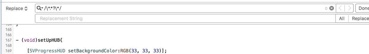 當項目一個類里面有幾千行代碼的時候,想要快速刪除或者替換掉有規律的代碼,這樣的話可以采用如下方法。