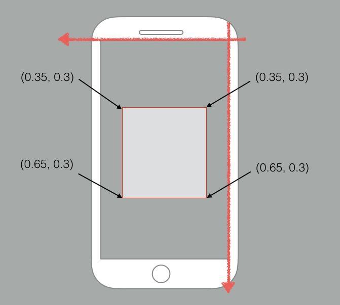 這個屬性的每一個值取值范圍在0~1之間,代表的是對應軸上的比例大小。最開始我以為這個是以左上角為原點,后來設置為CGRectMake(0.3, 0.35, 0.4, 0.3)發現和預期的不一樣,因為這個屬性是以屏幕右上角為坐標原點,并且寬高的順序要對換過來