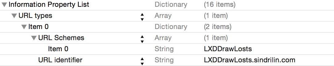 URL Schemes是一個數組,我們將在這個數組里面自定義自己的url schemes,這里我們填寫應用名。最終效果如下: