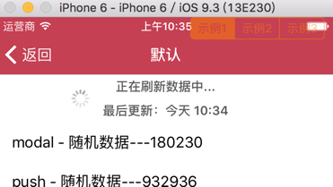 #pragma mark UITableView + 下拉刷新 隱藏狀態和時間- (void)example04{ // 設置回調(一旦進入刷新狀態,就調用target的action,也就是調用self的loadNewData方法) MJChiBaoZiHeader *header = [MJChiBaoZiHeader headerWithRefreshingTarget:self refreshingAction:@selector(loadNewData)]; // 隱藏時間 header.lastUpdatedTimeLabel.hidden = YES; // 隱藏狀態 header.stateLabel.hidden = YES; // 馬上進入刷新狀態 [header beginRefreshing]; // 設置header self.tableView.mj_header = header;} 5、下拉刷新 自定義文字