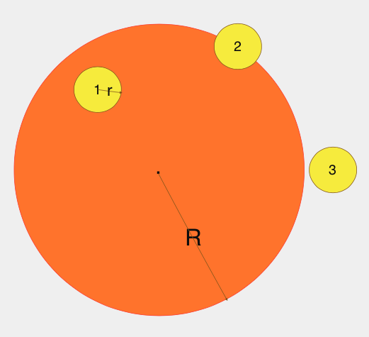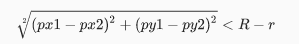大圓中心坐標(biāo)為(px1、py1),半徑為R; 隨機(jī)圓中心坐標(biāo)為(px2、py2),半徑為r