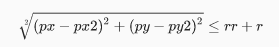 存在的標(biāo)準(zhǔn)圓中心坐標(biāo)為(px、py),半徑為rr; 隨機(jī)圓中心坐標(biāo)為(px2、py2),半徑為r