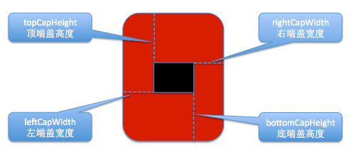 iOS中有個叫端蓋(end cap)的概念,用來指定圖片中的哪一部分不用拉伸。比如下圖中,黑色代表需要被拉伸的矩形區域,上下左右不需要被拉伸的邊緣就稱為端蓋。