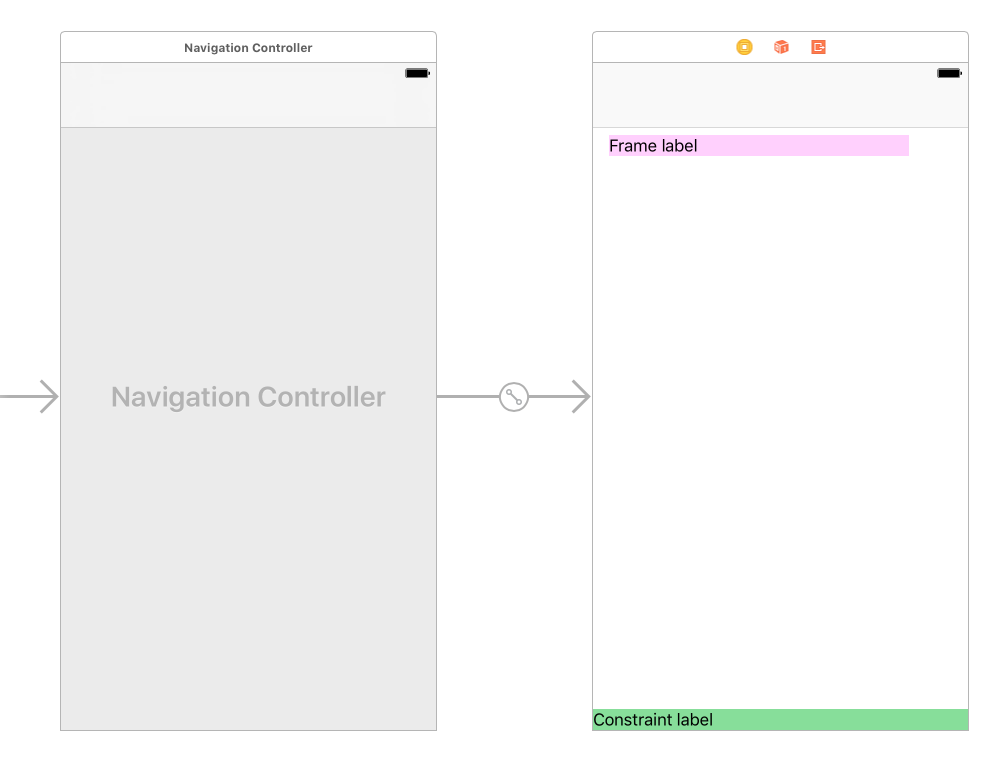 放置兩個 label。其中, frameLabel 沒有添加約束(NSLayoutConstraint),constraintLabel 左、右、下都有約束,與 view 相接。