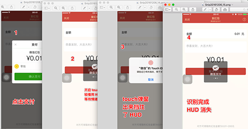 支付寶和微信為了消除用戶的緊張情緒,在開啟指紋識別的時候都有放 HUD