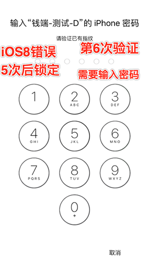 iOS 8 錯誤5次鎖定后,第6次驗證需要密碼
