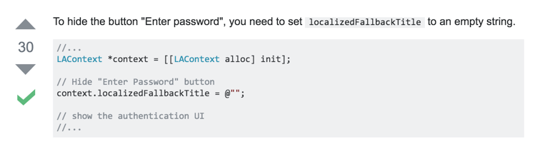 localizedFallbackTitle可以設置驗證TouchID時彈出Alert的輸入密碼按鈕的標題