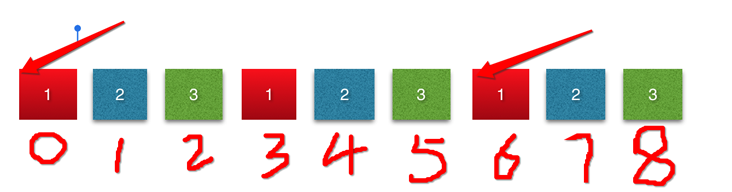 // MARK: - 設置數據源 func collectionView(_ collectionView: UICollectionView, numberOfItemsInSection section: Int) -> Int {// print(self.arrayM.count) return self.arrayM.count * 3 }2.當在定時器的作用下,或者在拖動情況存下滾動到第八個時候,設置此時的collectionView.contentOffset.x等于滾動到第三個cell的contentOffset.x