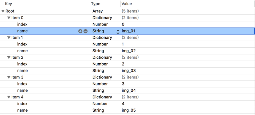 import UIKitclass ViewController: UIViewController ,UICollectionViewDataSource, UICollectionViewDelegate { @IBOutlet weak var collectionView: UICollectionView! var timer : Timer? var arrayM : [BOModel] = [] { didSet { self.collectionView.reloadData() } } static let CellID = "cell" override func viewDidLoad() { super.viewDidLoad() self.collectionView.dataSource = self self.collectionView.delegate = self // 加載數據 loadData() self.collectionView.register(UINib.init(nibName: "BOCollectionViewCell", bundle: nil), forCellWithReuseIdentifier: ViewController.CellID) //設置collextionView setupCollectionView() // 開啟定時器 starTimer() } /// 從polist中加載數據 func loadData() { let stemp: NSArray = NSArray(contentsOfFile: Bundle.main.path(forResource: "shops.plist", ofType: nil)!)! for dict in stemp { let model = BOModel.init(dict: dict as! [String : Any]) self.arrayM.append(model) } } /// 設置cellection的布局方式 /// /// - Returns: 一個布局類型 func setupCollectionFlowlayout() -> (UICollectionViewFlowLayout) { let flowLayout = UICollectionViewFlowLayout() flowLayout.itemSize = self.collectionView.bounds.size flowLayout.minimumLineSpacing = 0 flowLayout.minimumInteritemSpacing = 0 flowLayout.scrollDirection = .horizontal flowLayout.sectionInset = UIEdgeInsetsMake(0, 0, 0, 0) return flowLayout } /// 設置collectionVIew func setupCollectionView() -> () { self.collectionView.collectionViewLayout = self.setupCollectionFlowlayout() self.collectionView.showsVerticalScrollIndicator = false self.collectionView.showsHorizontalScrollIndicator = false self.collectionView.isPagingEnabled = true } // MARK: - 設置數據源 func collectionView(_ collectionView: UICollectionView, numberOfItemsInSection section: Int) -> Int {// print(self.arrayM.count) return self.arrayM.count * 3 } func collectionView(_ collectionView: UICollectionView, cellForItemAt indexPath: IndexPath) -> UICollectionViewCell { let cell = self.collectionView.dequeueReusableCell(withReuseIdentifier: ViewController.CellID, for: indexPath) as! BOCollectionViewCell cell.model = self.arrayM[indexPath.row % self.arrayM.count] return cell } // MARK: - 實現代理方法 func scrollViewDidEndDecelerating(_ scrollView: UIScrollView) { //contentOffset.x == 0 時,重新設置contentOffset.x的值 if collectionView.contentOffset.x == 0 { self.collectionView.contentOffset.x = CGFloat(2 * self.arrayM.count - 1) * self.collectionView.bounds.width } //當到達最后一個cell時,重新設置contentOffset.x的值 if collectionView.contentOffset.x == CGFloat(3 * self.arrayM.count - 1) * self.collectionView.bounds.width { self.collectionView.contentOffset.x = CGFloat(self.arrayM.count - 1) * self.collectionView.bounds.width } } /// 開啟定時器 func starTimer () { let timer = Timer.init(timeInterval: 1, target: self, selector: #selector(ViewController.nextPage), userInfo: nil, repeats: true) // 這一句代碼涉及到runloop 和 主線程的知識,則在界面上不能執行其他的UI操作 RunLoop.main.add(timer, forMode: RunLoopMode.commonModes) self.timer = timer } /// 在1秒后,自動跳轉到下一頁 func nextPage() { // 如果到達最后一個,則變成第四個 if collectionView.contentOffset.x == CGFloat(3 * self.arrayM.count - 1) * self.collectionView.bounds.width { self.collectionView.contentOffset.x = CGFloat(self.arrayM.count - 1) * self.collectionView.bounds.width }else { // 每過一秒,contentOffset.x增加一個cell的寬度 self.collectionView.contentOffset.x += self.collectionView.bounds.size.width }} /// 當collectionView開始拖動的時候,取消定時器 func scrollViewWillBeginDragging(_ scrollView: UIScrollView) { self.timer?.invalidate() self.timer = nil } /// 當用戶停止拖動的時候,開啟定時器 func scrollViewWillEndDragging(_ scrollView: UIScrollView, withVelocity velocity: CGPoint, targetContentOffset: UnsafeMutablePointer<CGPoint>) { starTimer() }}plist文件如下圖所示: