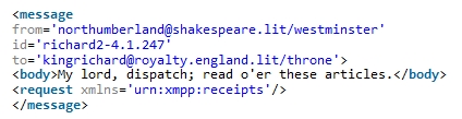 根據 XMPP 協議,消息體的內容存儲在標簽 body 內