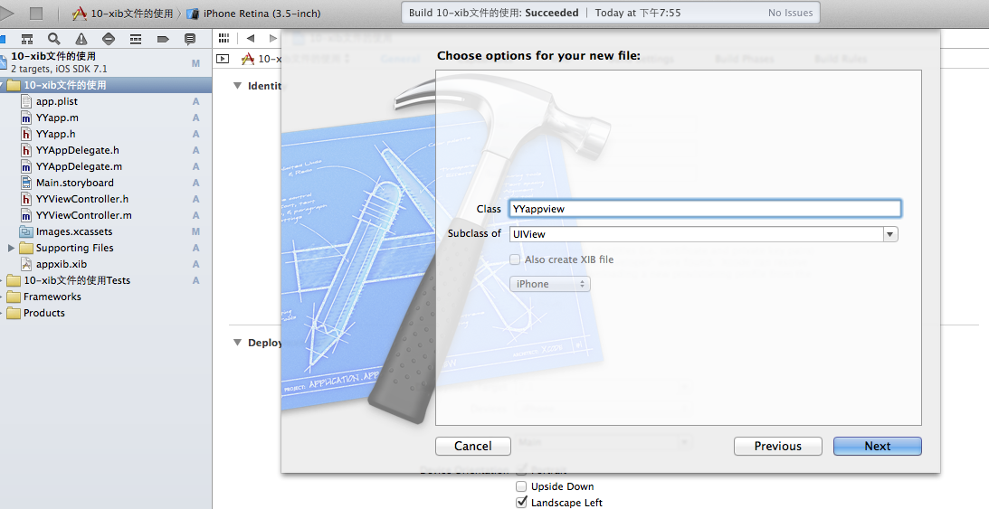 新建一個(gè)xib對(duì)應(yīng)的視圖類,繼承自Uiview