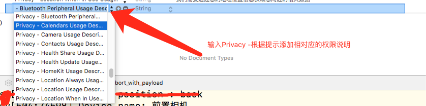 我們需要打開info.plist文件添加相應權限的說明,否則程序在iOS10上會出現崩潰。