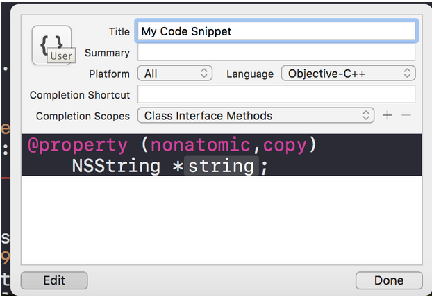 可以使用代碼片段的平臺,有IOS/OS X/All三個選項(xiàng)