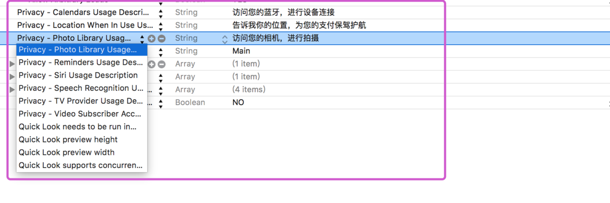 注意,info.plist 不加對應(yīng)字段,訪問相冊,通訊錄,同時添加的時候,結(jié)尾尾不要有空格
