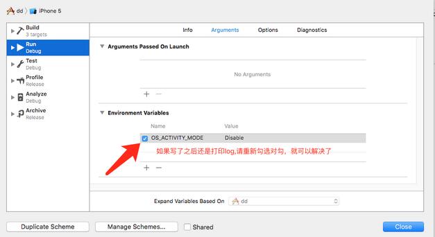 Xcode8里邊 Edit Scheme-> Run -> Arguments, 在Environment Variables里邊添加