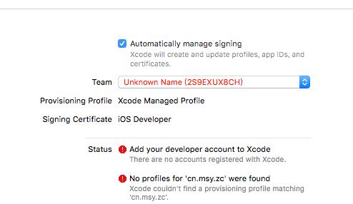 1.Xcode未設(shè)置開發(fā)者賬號(hào)情況下的截圖