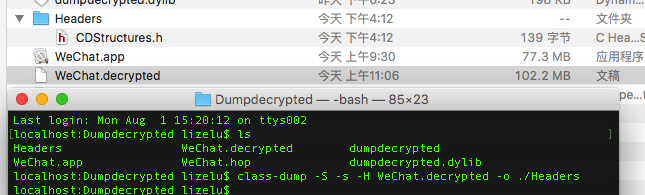 class-dump -S -s -H WeChat.decrypted -o ./Headers