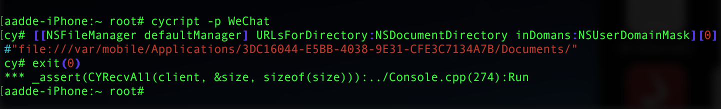 DYLD_INSERT_LIBRARIES=dumpdecrypted.dylib /var/mobile/Applications/3DC16044-E5BB-4038-9E31-CFE3C7134A7B/WeChat.app/WeChat