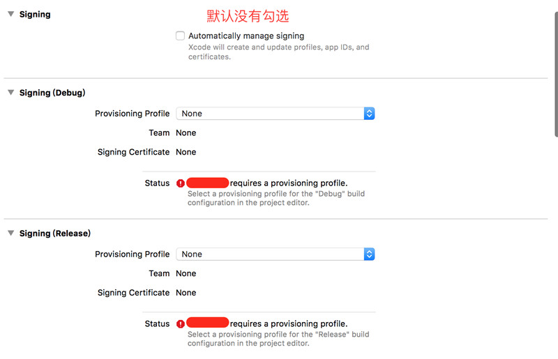 直接使用Xcode8Beta打開工程后,你會發現你的provisonfile配置出了問題,這是由于在Xcode8中對工程配置有了一些小的改動。