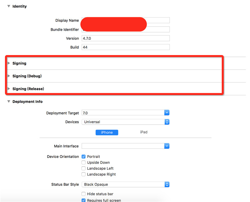 在Xcode8工程配置的general選項卡中,使用更詳細signing選項替換了原有的team選項。