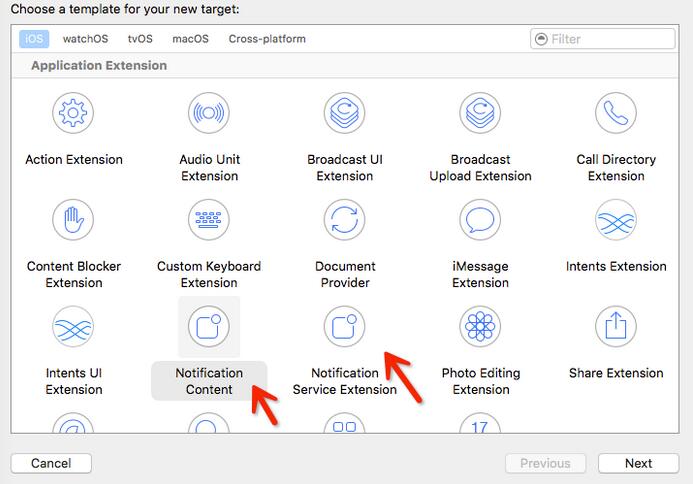 如圖,Notification Content負(fù)責(zé)自定義通知UI,Notification Service Extension負(fù)責(zé)接收并處理數(shù)據(jù)