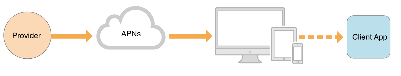 后臺(tái)服務(wù)器以后就是根據(jù)deviceToken發(fā)送推送消息給APNs,APNs再根據(jù)deviceToken將消息推送到對(duì)應(yīng)設(shè)備,設(shè)備再喚起app,顯示推送而來的消息。