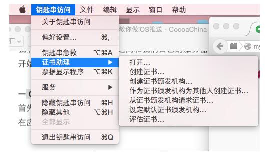 點擊選項欄中的鑰匙串訪問中的證書助理: