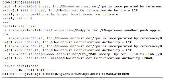 openssl s_client -connect gateway.sandbox.push.apple.com:2195 -cert PushChatCert.pem -key PushKey.pem