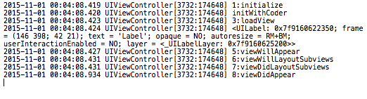 可以看到,手動調用loadView后,label是被創建了出來,但是暴漏了一個更嚴重的問題,系統不在調用ViewDidLoad方法,這是十分有風險的,因為我們大部分的初始化代碼都會放在這個方法里,所以手動調用loadView是一種錯誤的方法,apple文檔聲明對于loadView方法,我們從來都不要手動直接調用,那么我們如何實現創建后對成員對象進行傳值設置呢,iOS9中增加了這樣一個方法:- (void)loadViewIfNeeded NS_AVAILABLE_IOS(9_0);這個方法十分有用,調用這個方法,會將視圖創建出來,并且不會忽略viewDidLoad的調用。