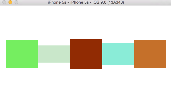 我們向其中拖入任意數量的view,設置不同的顏色,就實現了我們想要的效果,并且可以隨意動態刪除和添加其中的view數量,不需要改變約束。