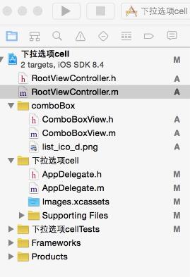 #import <UIKit/UIKit.h>//加入頭文件#import "ComboBoxView.h"@interface RootViewController : UIViewController{ ComboBoxView *_comboBox;}@end RootViewController.m