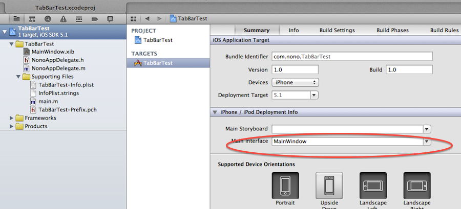 2.建立完后我們自定頂一個MainWindow.xib(當(dāng)然,這個名字可以隨意取,但是按照規(guī)范以及一種默認(rèn)留下來的習(xí)慣),作為應(yīng)用啟動時加載的首個nib文件,