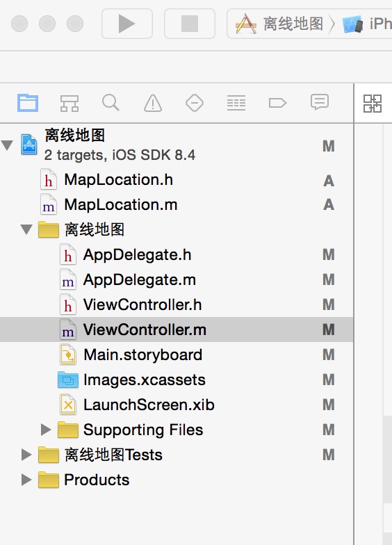 #import "ViewController.h"@interface ViewController ()@end@implementation ViewController- (void)viewDidLoad { [super viewDidLoad]; // Do any additional setup after loading the view. //調用系統自帶的高德地圖 //顯示當前某地的離線地圖 _mapView = [[MKMapView alloc] init]; _mapView.frame = CGRectMake(0, 40, 320,400); _mapView.delegate = self; _mapView.mapType = MKMapTypeStandard; [self.view addSubview:_mapView]; addressString=@"光啟城"; NSLog(@"---addressString---%@",addressString); [self geocodeQuery];}- (void)geocodeQuery{ if (addressString == nil || [addressString length] == 0) { return; } CLGeocoder *geocoder = [[CLGeocoder alloc] init]; [geocoder geocodeAddressString:addressString completionHandler:^(NSArray *placemarks, NSError *error) { NSLog(@"查詢記錄數:%ld",[placemarks count]); if ([placemarks count] > 0) { [_mapView removeAnnotations:_mapView.annotations]; } for (int i = 0; i < [placemarks count]; i++) { CLPlacemark* placemark = placemarks[i]; //調整地圖位置和縮放比例 MKCoordinateRegion viewRegion = MKCoordinateRegionMakeWithDistance(placemark.location.coordinate, 10000, 10000); [_mapView setRegion:viewRegion animated:YES]; MapLocation *annotation = [[MapLocation alloc] init]; annotation.streetAddress = placemark.thoroughfare; annotation.city = placemark.locality; annotation.state = placemark.administrativeArea; annotation.zip = placemark.postalCode; annotation.coordinate = placemark.location.coordinate; [_mapView addAnnotation:annotation]; } }];}#pragma mark Map View Delegate Methods- (MKAnnotationView *) mapView:(MKMapView *)theMapView viewForAnnotation:(id <MKAnnotation>) annotation { MKPinAnnotationView *annotationView = (MKPinAnnotationView *)[_mapView dequeueReusableAnnotationViewWithIdentifier:@"PIN_ANNOTATION"]; if(annotationView == nil) { annotationView = [[MKPinAnnotationView alloc] initWithAnnotation:annotation reuseIdentifier:@"PIN_ANNOTATION"]; } annotationView.pinColor = MKPinAnnotationColorPurple; annotationView.animatesDrop = YES; annotationView.canShowCallout = YES; return annotationView;}- (void)mapView:(MKMapView *)mapView didUpdateUserLocation:(MKUserLocation *)userLocation{ _mapView.centerCoordinate = userLocation.location.coordinate;}- (void)mapViewDidFailLoadingMap:(MKMapView *)theMapView withError:(NSError *)error { NSLog(@"error : %@",[error description]);}@end MapLocation.h