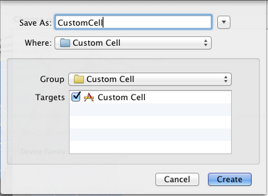 單擊Create,這樣就創(chuàng)建了CustomCell.xib。