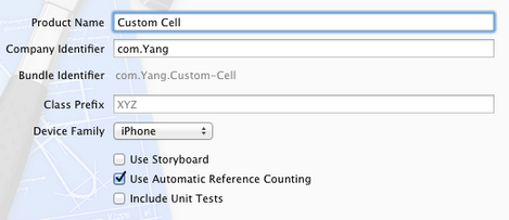 1、運(yùn)行Xcode 4.2,新建一個(gè)Single View Application,名稱為Custom Cell: