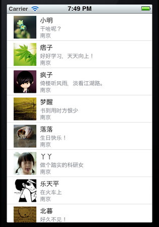 我們這次要自定義一個(gè)Cell,使得它像QQ好友列表的一行一樣:左邊是一張圖片,圖片的右邊是三行標(biāo)簽: