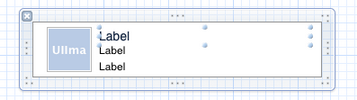 6、向新加的Table View Cell添加控件:拖放一個(gè)ImageView控件到左邊,并設(shè)置大小為50×50。然后在ImageView右邊添加三個(gè)Label,設(shè)置標(biāo)簽字號(hào),最上邊的是14,其余兩個(gè)是12: