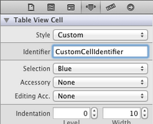 選中Table View Cell,打開Attribute Inspector,將Identifier設(shè)置為CustomCellIdentifier: