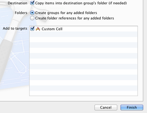 之后選擇Next和Create,就建立了兩個(gè)文件:CustomCell.h和CustomCell.m。