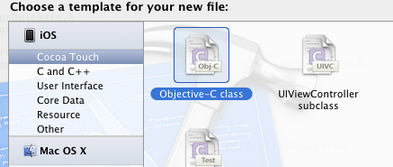 3、創(chuàng)建一個(gè)UITableViewCell的子類:選中Custom Cell目錄,依次選擇File ― New ― New File,在彈出的窗口,左邊選擇Cocoa Touch,右邊選擇Objective-C class: