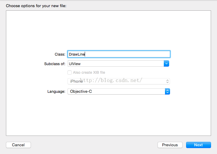 接下來我們創建一個UIView 用來添加直線 起名:DrawLine