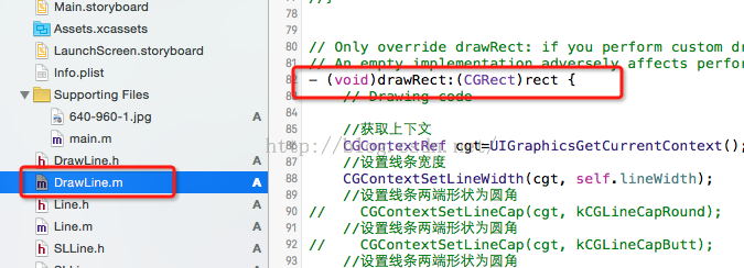 接下來 我們重寫DrawLine 的 drawRect 方法 繪制線條