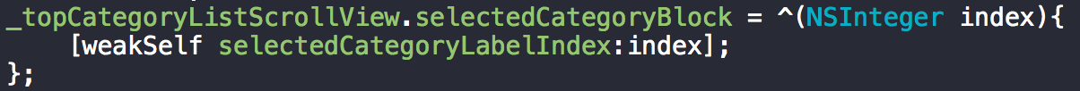 這里先說第一種情況,點擊導航欄的分類標簽,則block回調到controller里