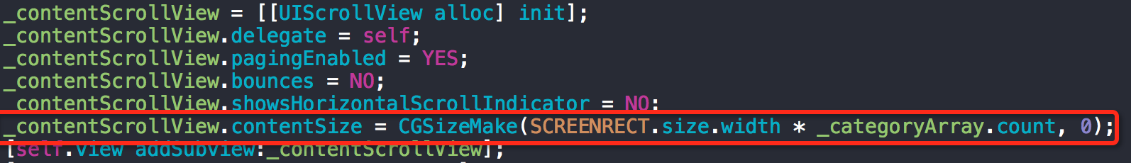 同樣根據分類數量設置好內容視圖的contentSize