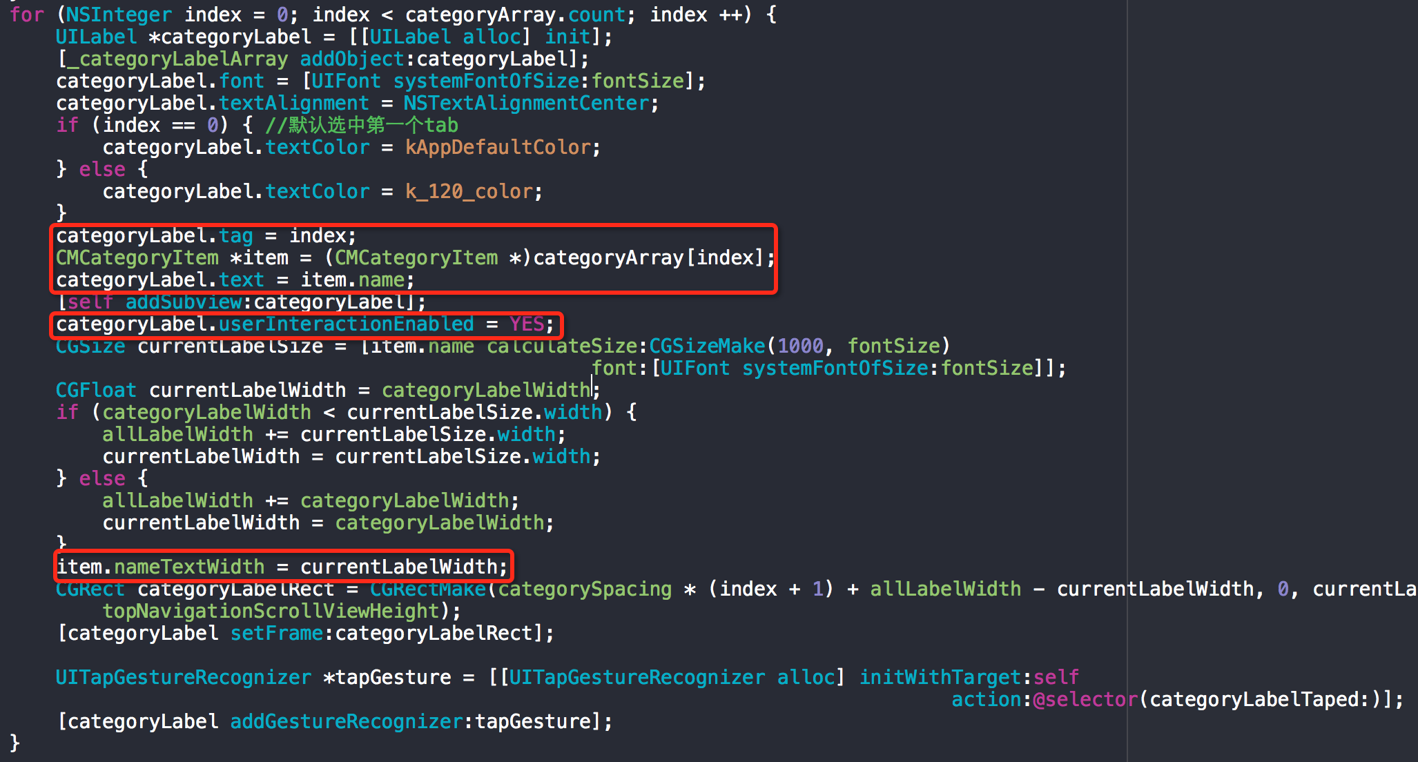 遍歷分類數據,往頂部導航欄添加label。需要注意以下幾點: